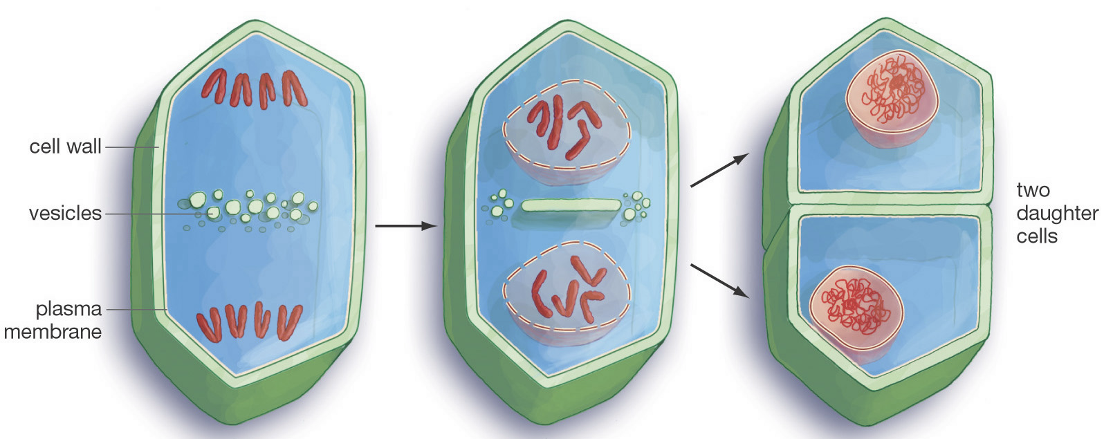 Figure: In plant cells, a cell plate will form, which then becomes part of the cell wall.