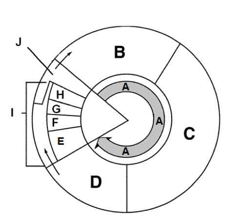 Figure: Label A is interphase, which includes three phases: B is G1 phase, C is S phase, and D is G2 phase. Then it’s mitosis.