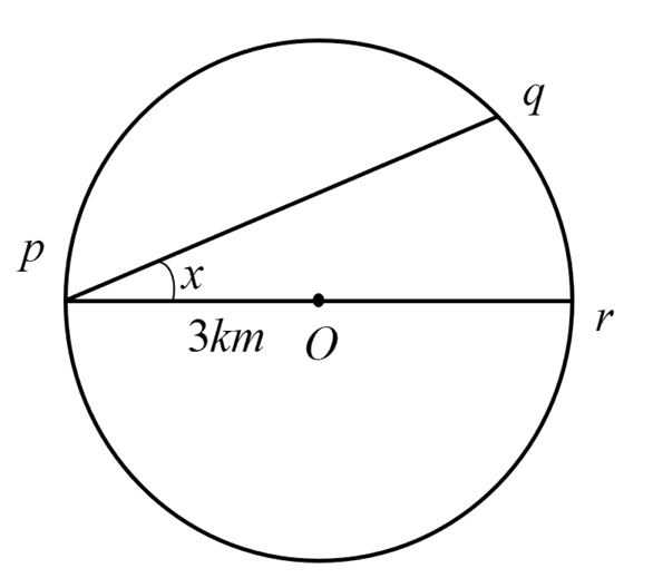 Owen is participating in a sports competition involving running and rowing. When he is rowing he can go across the circular lake however when he is running he can only go around the edge of the lake. He can row at a speed of 5 km/h and run at a speed of 7 km/h . The lake has a radius of 3 km with points p,q and r on the circumference of the lake. What is the shortest possible time taken in hours for Owen to row from p to q then run from q to r? (Correct to 2 decimal places)