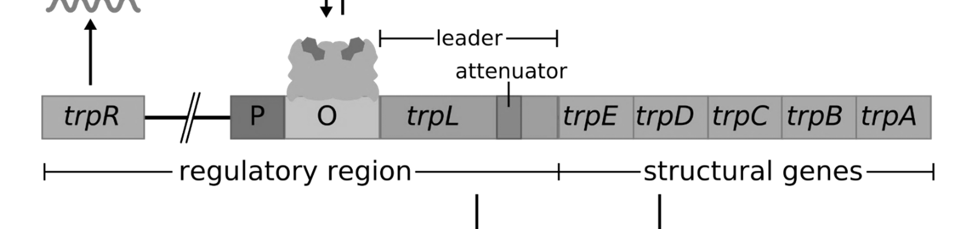 The trp operon contains an operator region where