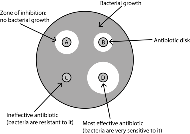 - Using a ruler, measure the ZOI radius (mm) for each concentration of ampicillin.