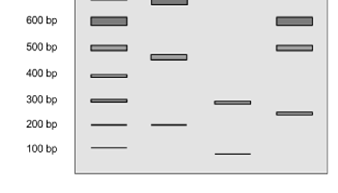 Use the following gel electrophoresis to answer Questions 15 and 16.