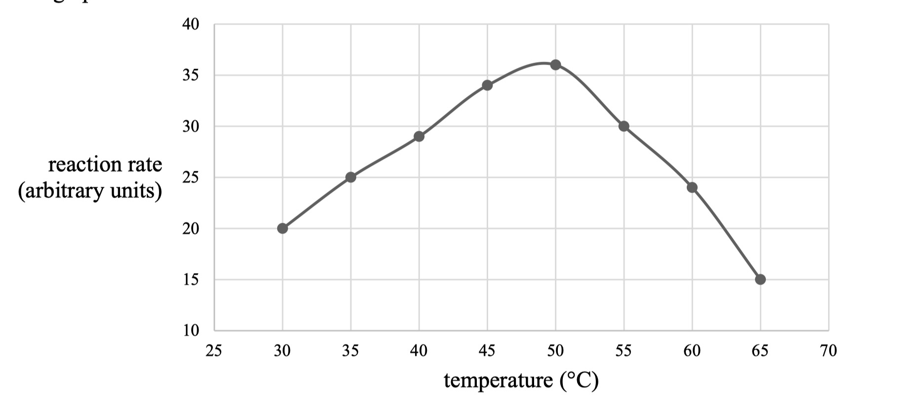 A student carried out an experiment regarding the breakdown of hydrogen peroxide to determine the effect that changing temperature had on the rate of the reaction. The student hypothesised that the reaction rate would increase until the temperature reached 37 °C and would then decrease.