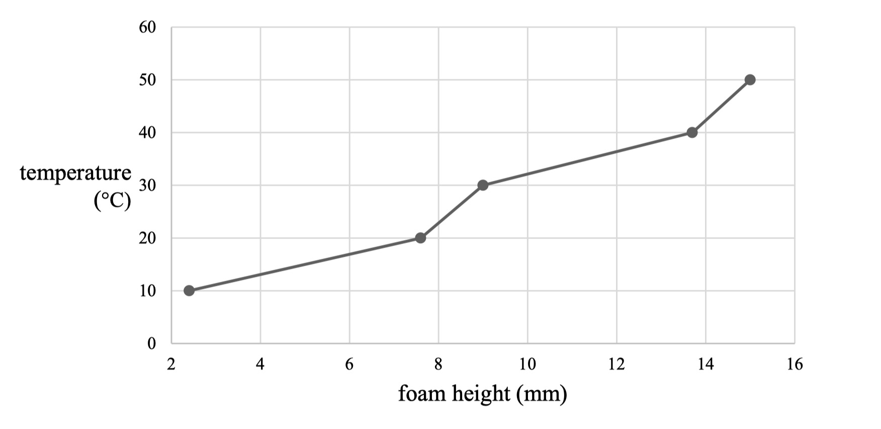One piece of potato was placed into each test tube. After one minute, the height of the foam in each test tube was recorded.